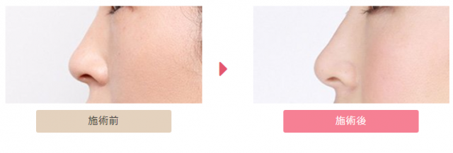 低くて形の悪い鼻が嫌で仕方なかったのですが、いきなりメスを入れるのは心配だったのでとりあえずヒアルロン酸を入れてみることにしました。ヒアルロン酸だと鼻筋が太くなるとか言いますが、まったくそんなことはなく、短い手術できれいな高い鼻にしてもらえて満足しています。